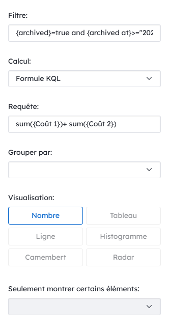 Cependant, à partir du moment où vous modifiez le champ “Requête” prédéfini par un requête “query” le nombre présenté ne comprend pas les cartes en état “archivé”.