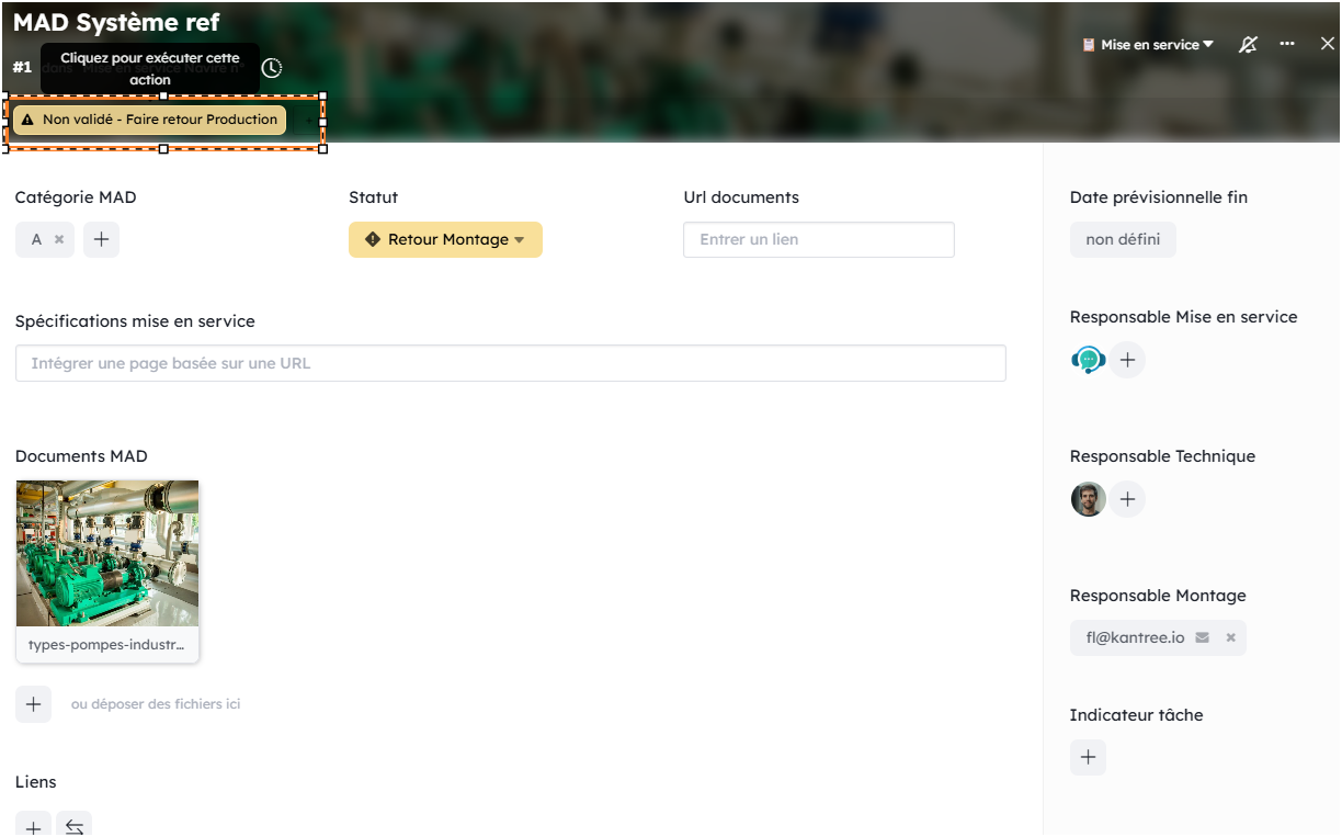 Le processus de retour à l’équipe Production s’effectue par un bouton sur la carte (automatisation)