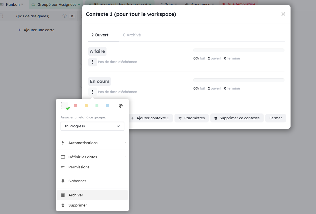Vous pouvez avoir plusieurs collections de groupes dans un même projet, ce qui vous permet d’avoir plusieurs logiques pour trier vos cartes. Nous appelons ça des contextes de projet.