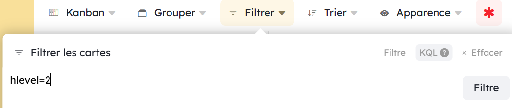Vous pouvez par exemple filtrer sur les sous-cartes en ajoutant ex : hlevel=2 ou sur un état ex: state=done