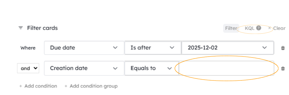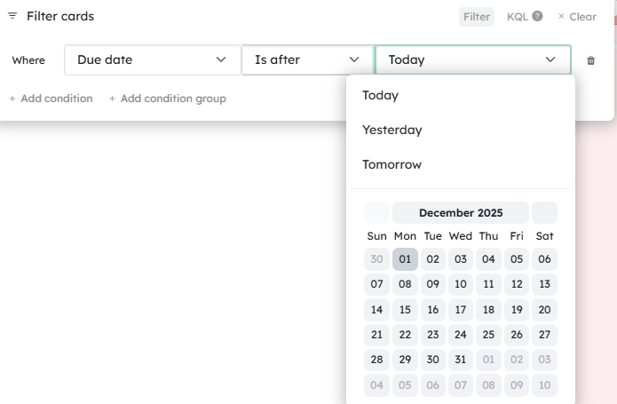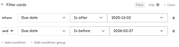 Filtering cards by a date or between two dates