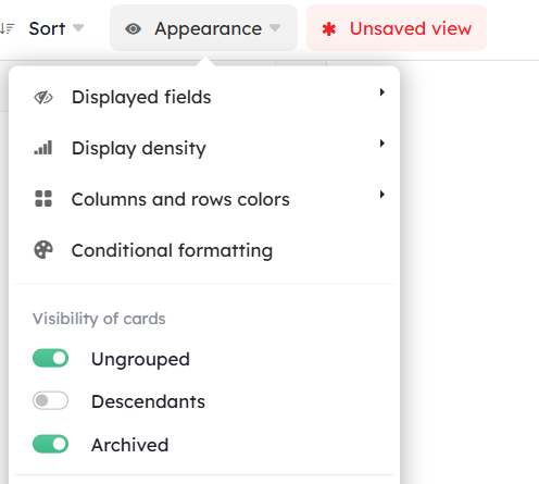 The card relation field has been updated to help you improve the readability of linked cards through appearance customization. Linked cards are now displayed as a view: Kanban, Board, List.